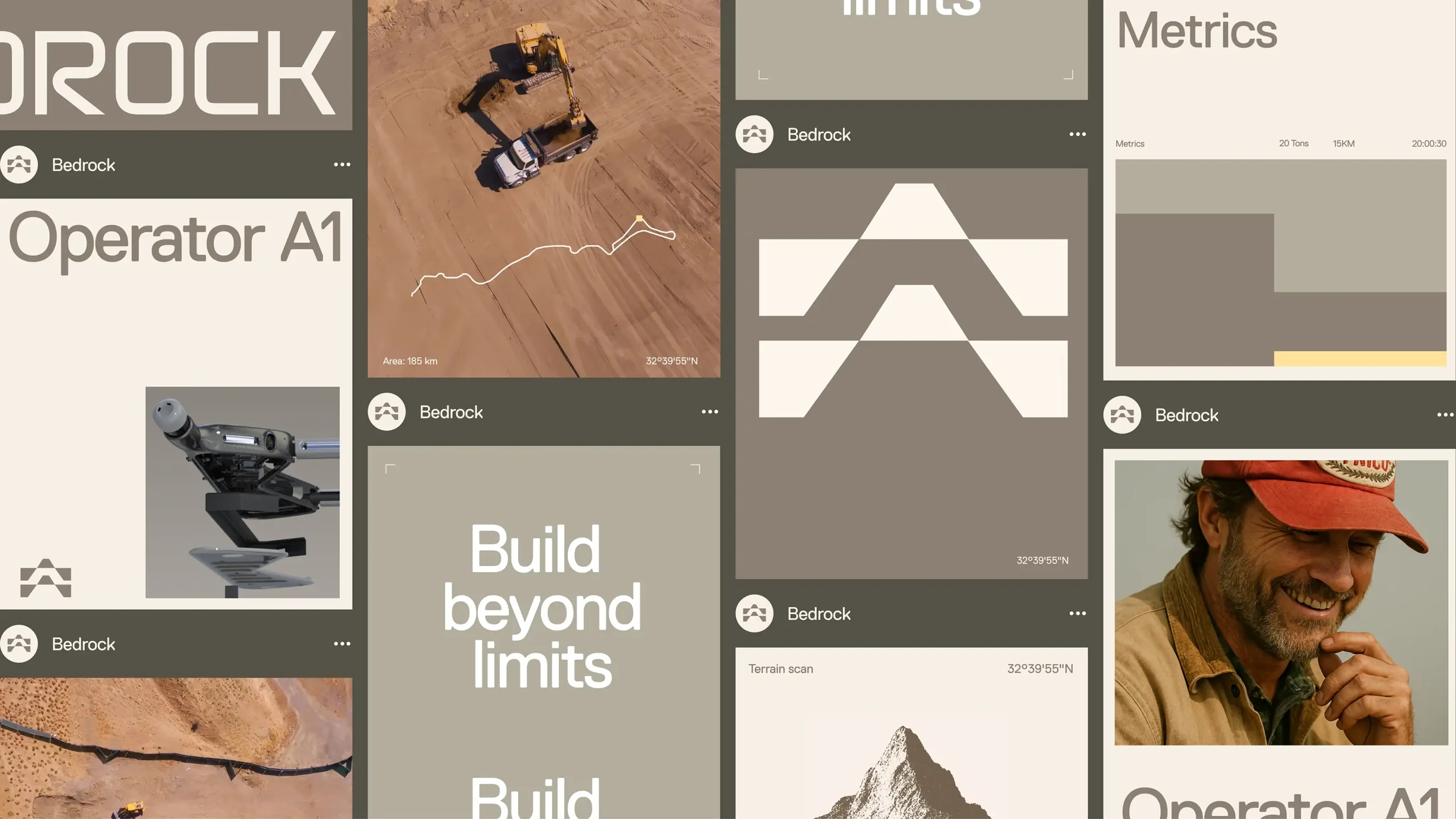 Ahead of their launch out of stealth, Bedrock partnered with Studio Everywhere and Confederation Studio to develop a complete brand system—strategy, narrative, brand identity, digital content, social and website. The result is a brand built to inspire confidence, communicate innovation, and scale with Bedrock’s vision for the future of construction.